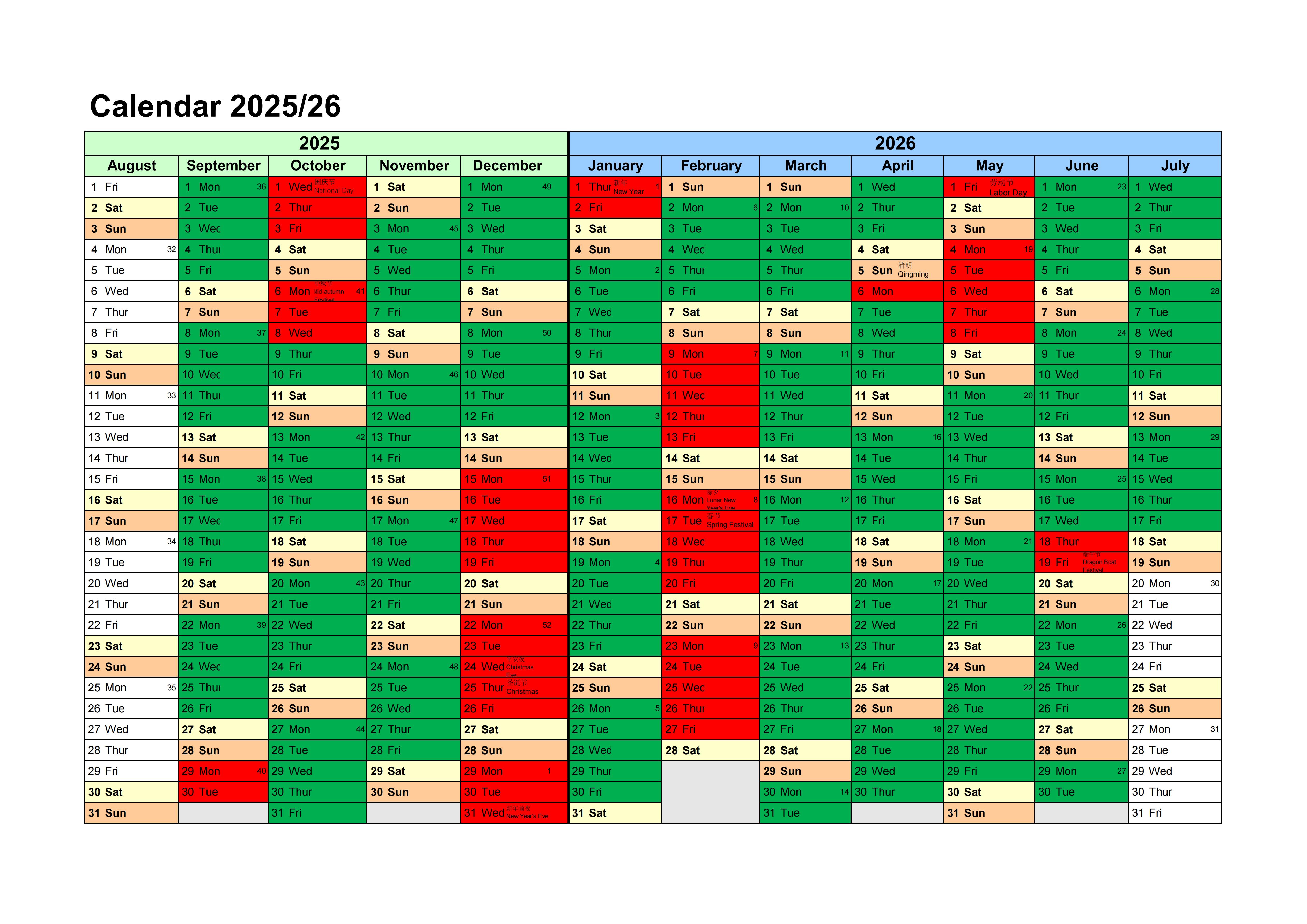 Calendrier 2025-2026